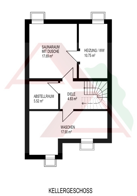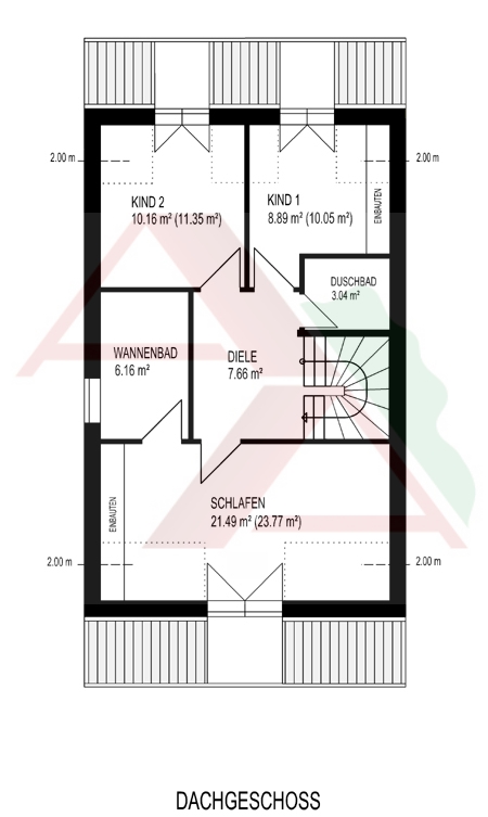 Zur weiteren Ausstattung gehören Fußbodenheizung (Gas), zentrale Warmwasserversorgung (Gas), Kunststofffenster und Türelemente mit Phonstop-Verglasung, Schlösser an sämtlichen Fenster- und Türelementen im Erdgeschoss, Haustür mit Sicherheitsschloss, Rollläden im Erd- und Dachgeschoss (Wohnzimmer-Terrassenseite elektrisch), Saunaraum mit Schwalldusche, Safe, Kabelanschluss und Satellitenschüssel, elektrische Markise, drei Einbauschränke (Schlaf-/Kinderzimmer und Eingangsdiele) sowie eine Einbauküche. Das Haus wurde von einer Fachfirma innen komplett neu gestrichen und der Teppichboden gereinigt, allerdings ist hier eine Erneuerung fällig.